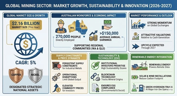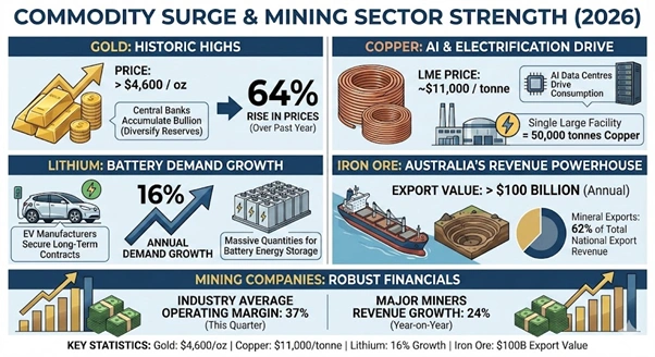 Global investors pour capital into the mining sector as 2026 begins. Resource companies report record earnings across multiple commodity groups. Market analysts track a significant surge in valuations for Australian and international miners.
