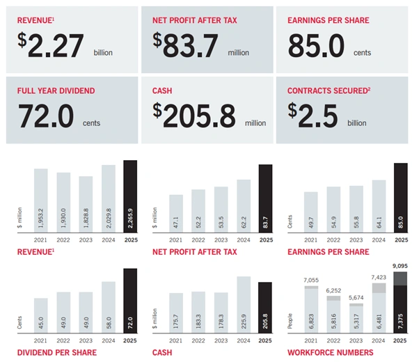 Monadelphous ASX MND delivered its highest earnings in 13 years during fiscal 2025. Net profit after tax reached $83.7 million, up 34.6% on the prior year. Revenue totalled $2.27 billion, including joint venture contributions.