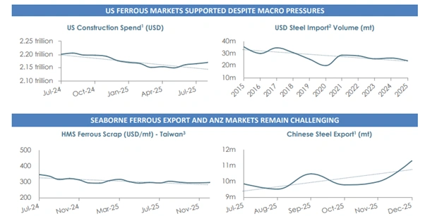 Non-ferrous markets and lifecycle services are expected to remain strong, according to the management. The constriction of DDR4 supply is expected to continue in 2027+. Domestic scrap demand may be supported by US tariffs.