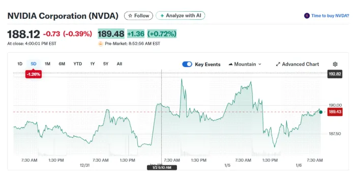 Figure 3: NVIDIA Corporation share price performance over recent trading sessions, reflecting technology sector volatility and investor sentiment. [Source: Yahoo Finance]