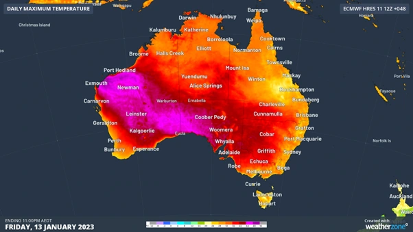 WA, SA, Vic, and NSW are expected to experience temperatures of 45°C or higher.