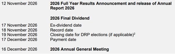The final dividend for fiscal 2026 follows the Company’s established payment structure. The Orica investor calendar 2026 ensures shareholders have visibility on year-end distributions.