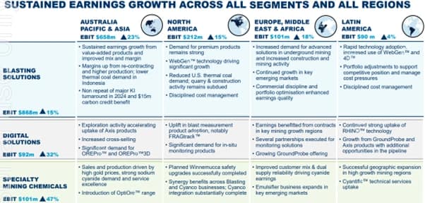 Figure 5: Segment-wise EBIT growth across regions for Orica’s Blasting Solutions, Digital Solutions, and Specialty Mining Chemicals businesses. [Source: Orica]