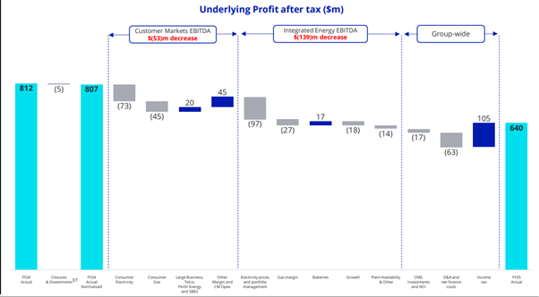 Figure 5: FY25 financial summary highlighting underlying profit movements across business segments