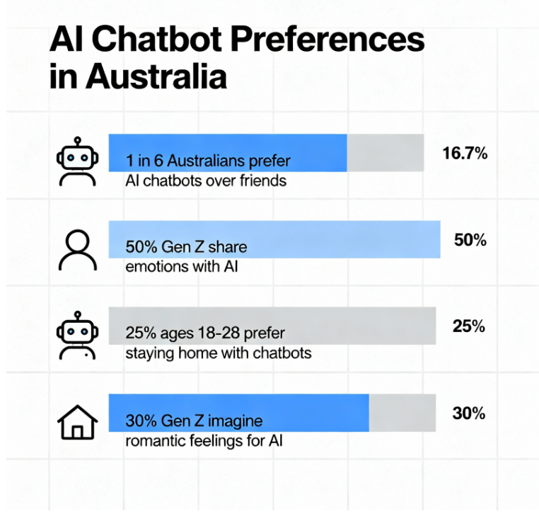 The rise of artificial intelligence chatbots appears to be accelerating the loneliness epidemic in Australia, according to new research by YouGov. The study surveyed over a thousand Australian adults and revealed that one in six respondents sometimes prefers staying at home to interact with an AI chatbot rather than going out with friends. This trend reflects a significant shift in social behaviour among Australians influenced by the availability of AI companionship.