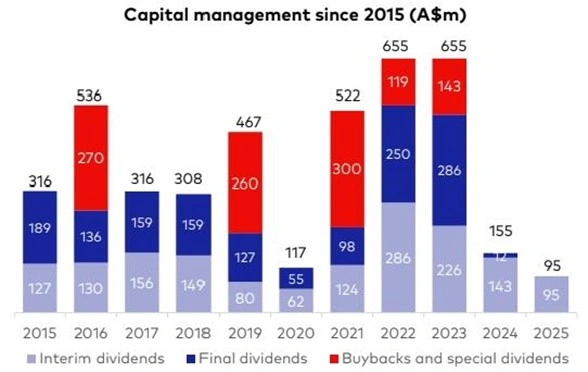 The firm has distributed around $1.1 billion to shareholders as a result of capital returned, has paid around $3.1 billion as ordinary dividends and has given around $1.7 billion as franking credits since 2015.