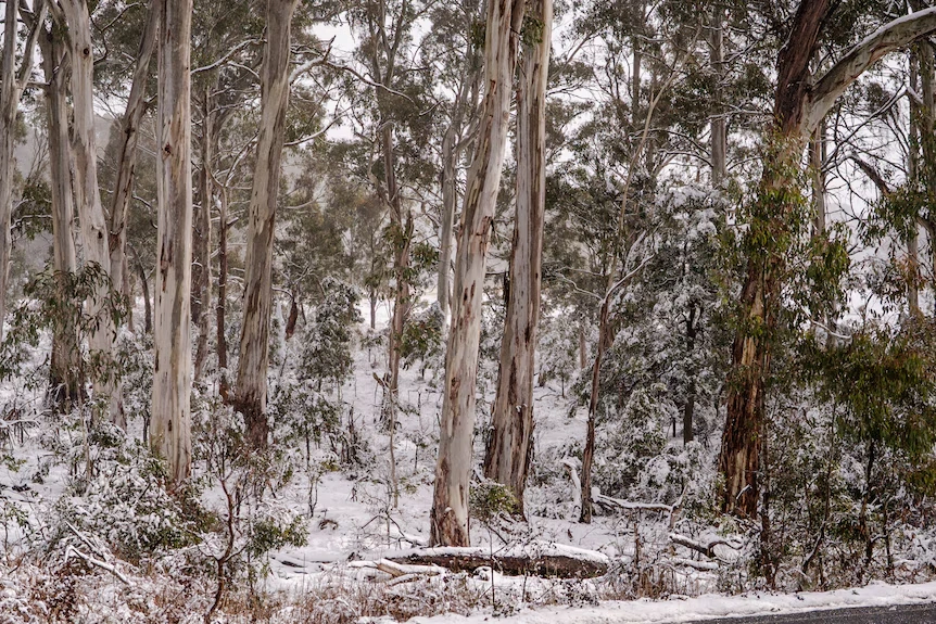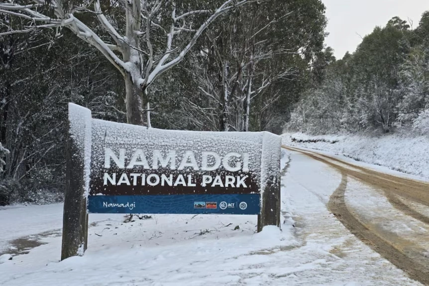 As low as 600 metres above sea level, it was snowing in Tasmania. Part of Namadgi National Park in the ACT was covered in white all day Saturday.