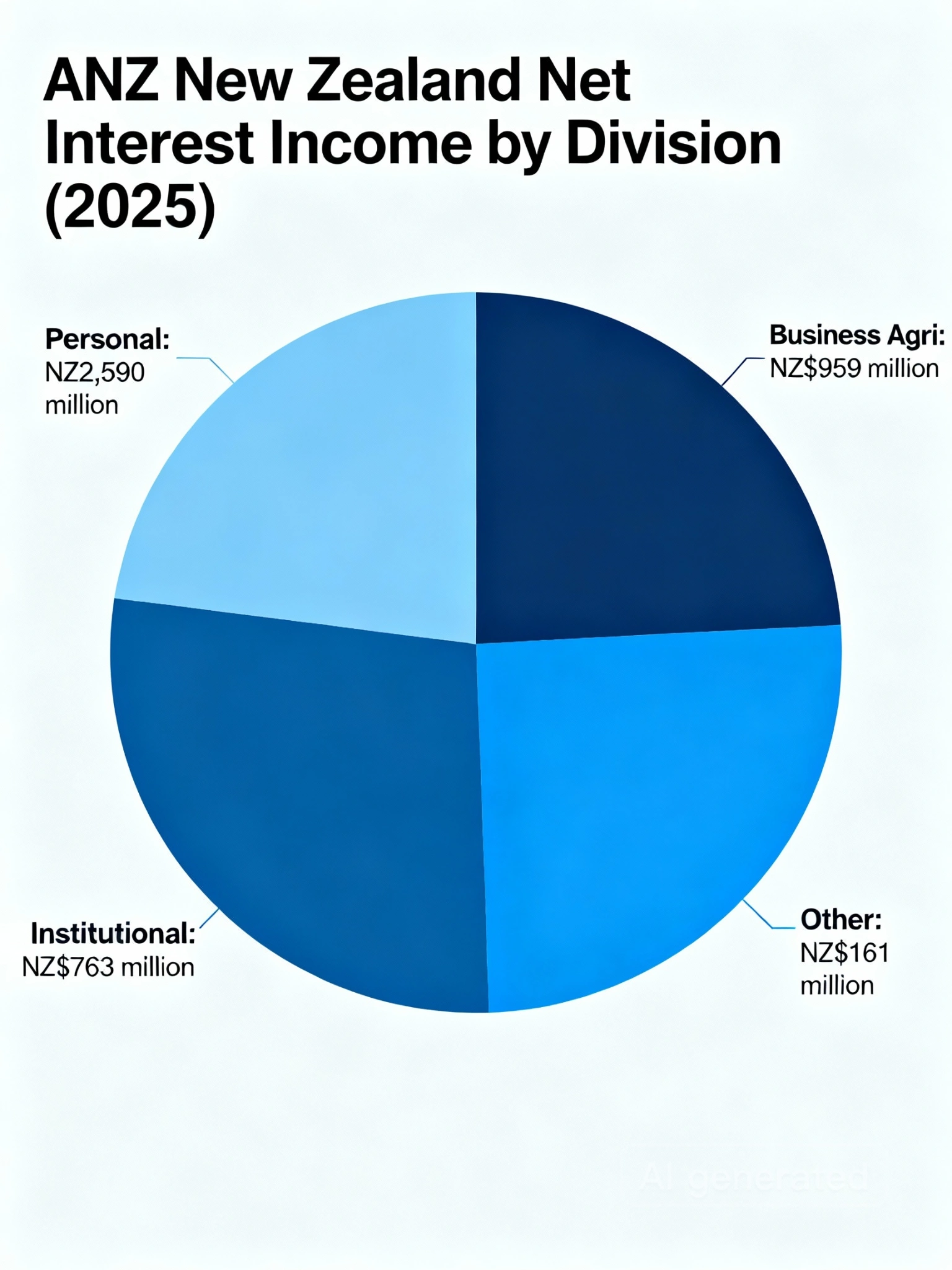 The bank operates through three main segments: Personal, Business & Agri, and Institutional. The Personal segment, which includes consumer and private banking, generated NZ$2.590 billion in net interest income. Business Agri delivered NZ$959 million, and Institutional operations contributed NZ$763 million. These segments collectively supported strong profitability before tax.