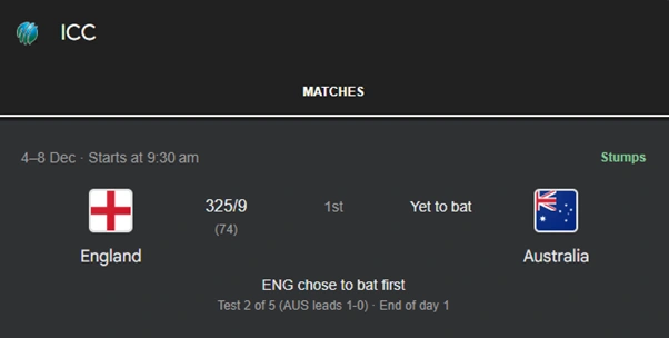 Australia’s bowlers maintained tight lines, challenging England’s middle and lower order. The atmosphere inside the stadium contributed to an intense cricketing contest, reflecting the historic rivalry’s spirit. The crowd witnessed a competitive start to this second Test after Australia’s first-match victory in Perth.