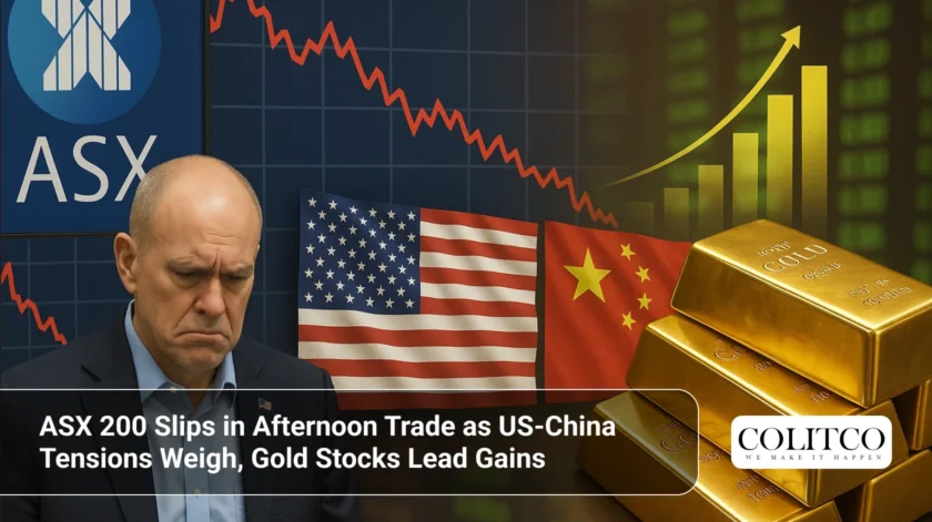 ASX 200 Slips in Afternoon Trade as US-China Tensions Weigh, Gold Stocks Lead Gains