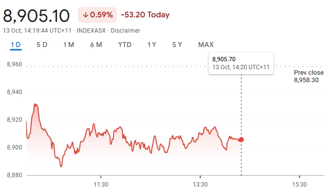 Australia’s equities market remained open on Monday, 13 October 2025, with investors witnessing pronounced volatility as global uncertainties filtered through into domestic trading. The S&P/ASX 200 index hovers near 8,905.10 points in afternoon trade, marking a drop of 53.20 points, or 0.59 per cent on the day. This movement reflects investor unease around the latest escalation in trade tensions involving the United States and China. Market activity continues strong as participants seek clarity ahead of important quarterly updates and economic releases.​