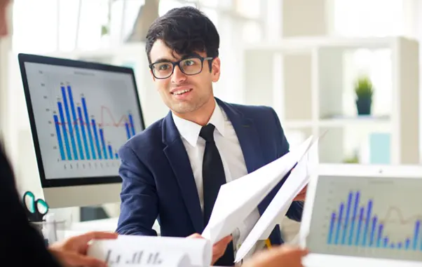 Figure 2: Analyst reviewing performance data and market charts during financial assessment [Source: Freepik]