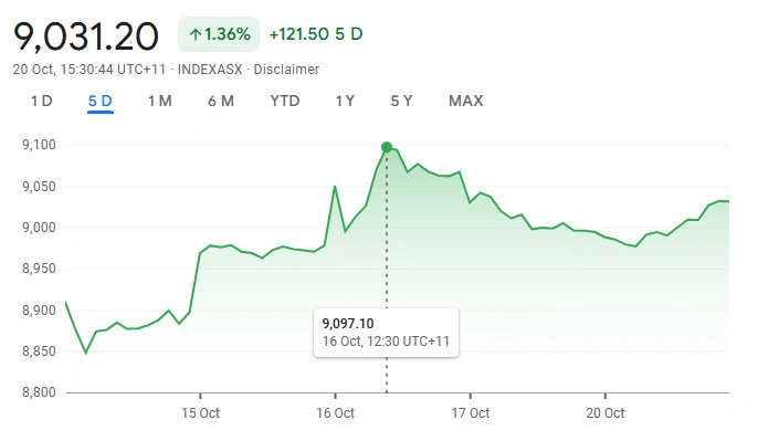 Over the past month, the ASX 200 has climbed 2.09 per cent and gained 7.8 per cent compared with the same time last year, closing the latest session at 8,995 points. The index remains near its recent all-time high of 9,109.70 recorded earlier in October. Market participants anticipate near-term volatility as companies begin the October–December reporting cycle and global macroeconomic data drive shifts in risk appetite.