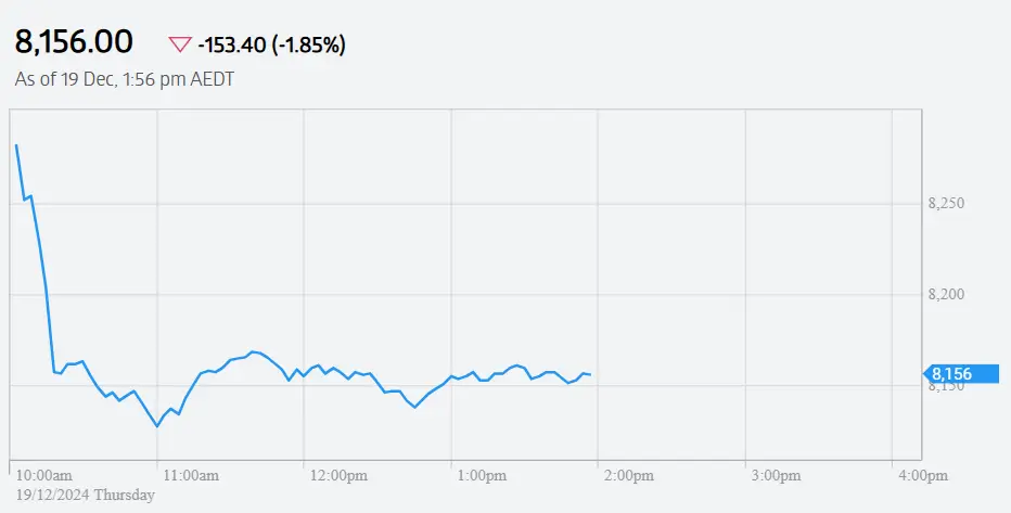 Figure 1: Performance of ASX200 as of 1:56 pm AEDT., December 19th, 2024