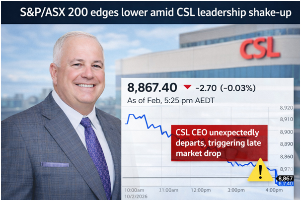 Figure 1: The ASX day (10th February, 2026) was capped by a surprise CEO (Dr. Paul McKenzie) exit at CSL Limited after the close, adding fresh uncertainty to one of Australia’s most influential companies.