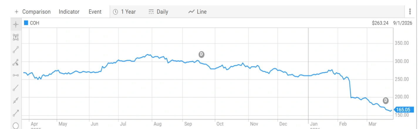 Figure 2: Cochlear Limited (ASX: COH) share price performance chart showing recent decline toward 52-week lows [Courtesy: ASX]