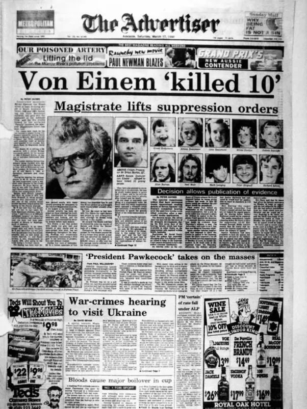 Bevan Spencer von Einem was an Adelaide child murderer who was convicted and also caused the fear of death to the people of South Australia. His conviction, which resulted in the 1983 rape and murder of a 15-year-old boy named Richard Kelvin, was the reason for the nationwide concern.