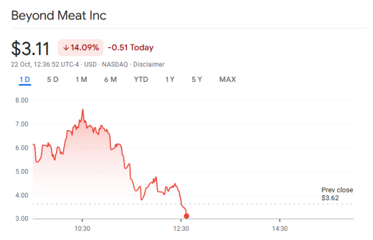 Beyond Meat (NASDAQ: BYND) has witnessed an extraordinary surge in its stock price, soaring nearly 600% over three trading days. The company’s shares rose from an all-time low of 50 cents on October 16 to around $3.62 by October 21, with further gains on October 22 continuing the momentum. This rally marks one of the most significant short-term rebounds for a stock within the year.