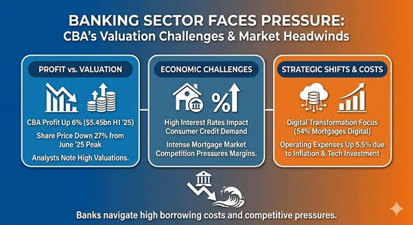 Commonwealth Bank of Australia encountered challenges despite reporting a profit. The bank posted a cash net profit of $5.45 billion for the first half of 2025. This result represents a 6 per cent increase from the previous period. However, the share price remains 27 per cent below its June 2025 peak.