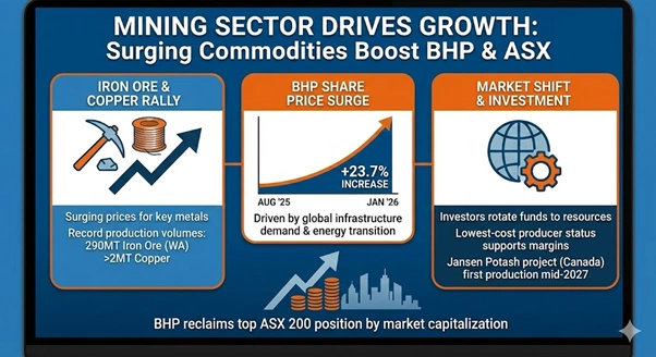 BHP Group Limited reclaimed the title of the largest company in Australia. This shift occurred on 27 January 2026. The mining giant overtook Commonwealth Bank of Australia during a rally in metals markets. BHP now holds a market value of over $253 billion.