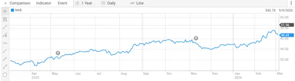 Ans. CBA entered the period at elevated valuations after reaching record highs in mid-2025, which compressed its upside relative to peers. Despite a retreat in late 2025, the stock recovered strongly into February 2026, adding approximately 18% since late January alone.