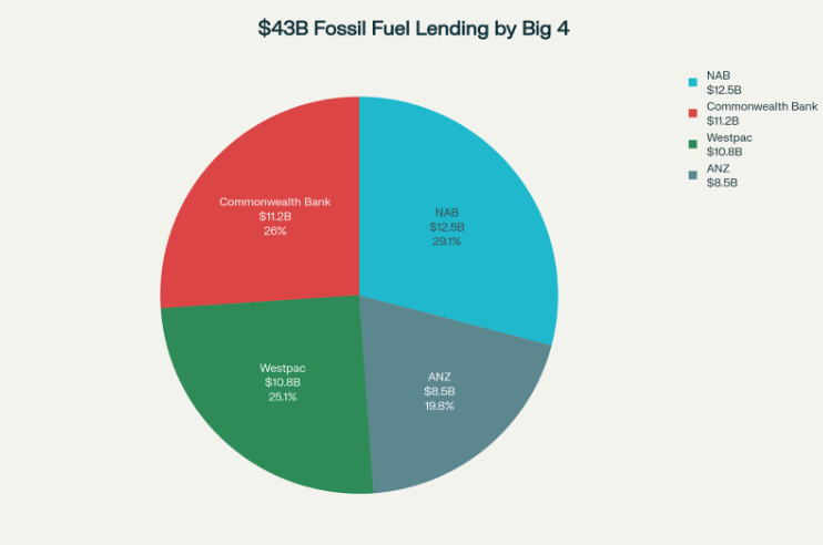 - $43 billion lent by Big Four banks to fossil fuel companies in recent years.