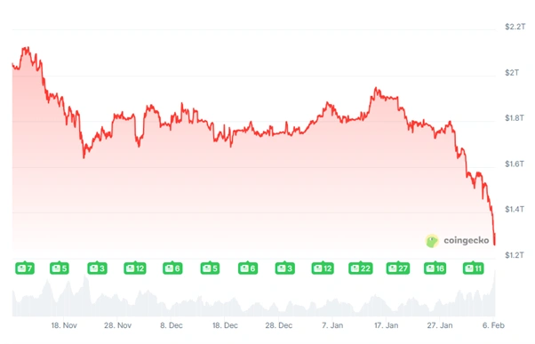 The total cryptocurrency market has lost US$2 trillion in value. This loss has occurred since the peak in October. CoinGecko data tracks these changes in market capitalisation. The industry lost US$800 billion in the last month alone. This contraction affects a wide range of digital tokens.