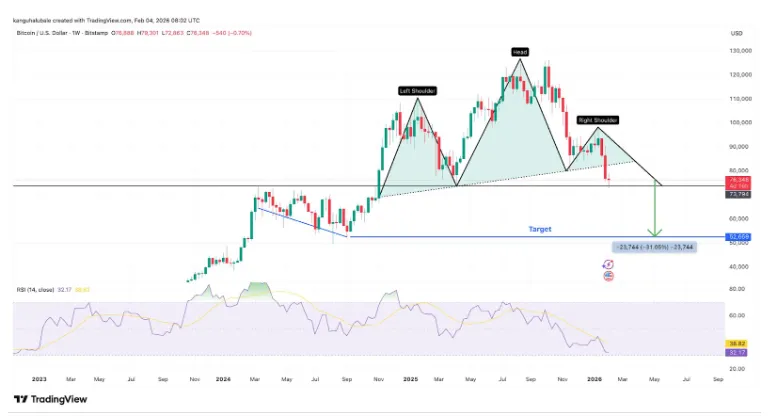 Bitcoin has declined roughly 40% from its October 2025 peak before staging a rebound. (Source: TradingView)