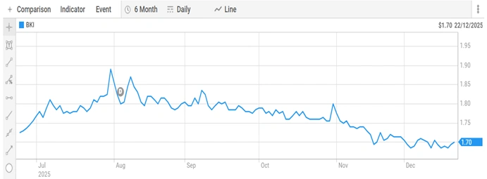 BKI paid total dividends of 7.90 cents per share for the financial year 2025. The final ordinary dividend of 4.00 cents per share maintained consistency with the prior year.