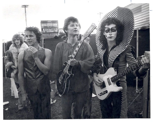 Skyhooks during a live performance, with Starkie on guitar, helping define Australian rock in the 1970s