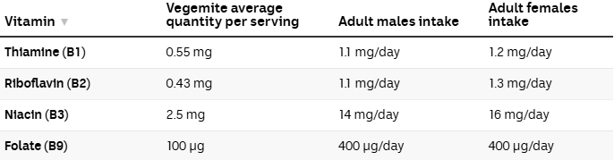 Each teaspoon of Vegemite contains 2.5 milligrams of vitamin B3. A person would need to eat around 14 teaspoons to exceed the daily safe limit.