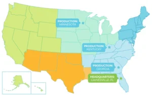Figure 6: Map of the United States highlighting the three Carbonxt production facility locations [Source: Carbonxt Group]