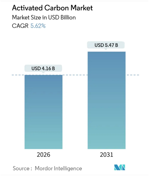 Figure 4: The global activated carbon market is forecast to expand at a CAGR of 5.62% through 2031, driven by tightening PFAS standards and mercury control mandates. [Mordor Intelligence]