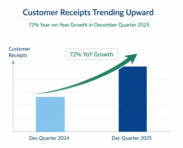 Figure 2: Carbonxt’s customer receipts trending upward with 72% year-on-year growth in December quarter 2025 [Carbonxt Group]