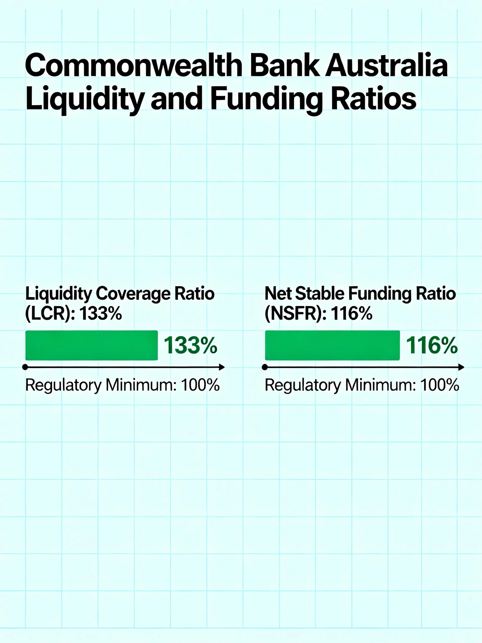 The bank’s Liquidity Coverage Ratio (LCR) averaged 133% for the quarter, above APRA’s minimum 100% requirement. This represents a rise from 130% in the previous quarter, supported by increased high-quality liquid assets (HQLA) of $198.3 billion, up 7.8%. Net cash outflows rose 5.7%, reflecting growth in customer deposits and an increase in wholesale funding maturities within 30 days.