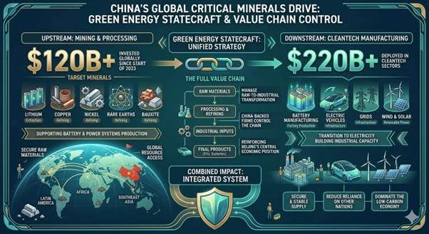 China spent more than $120 billion on mining and upstream processing in nations across the globe since the start of 2023. These funds target the extraction of lithium, copper, nickel, rare earths, and bauxite. This expenditure supports the production of batteries and power systems for the transition to electricity.