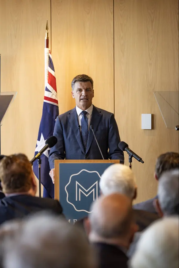 Opposition Leader Angus Taylor addressing the Menzies Research Centre in Sydney, where he outlined the Coalition’s immigration policy overhaul. [@AngusTaylorMP]