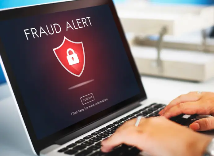Figure 2: Fraud alert warning displayed on a laptop screen highlighting cybersecurity and financial fraud risks [Courtesy: Freepik]
