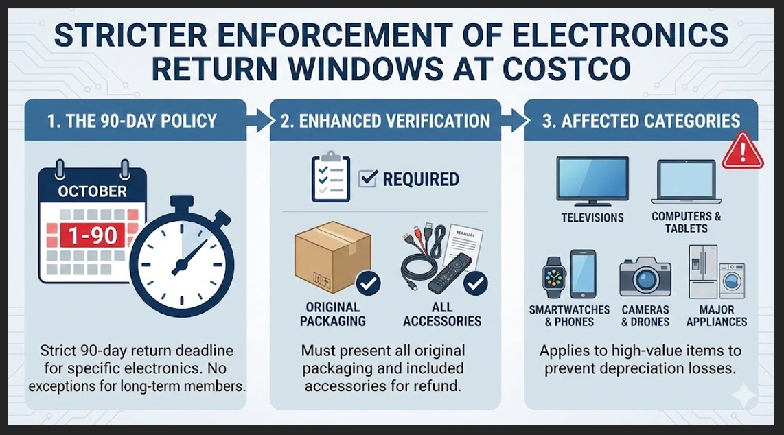 The second change focuses on the 90-day window for electronics. Costco previously allowed more flexibility for long-term members. Employees now strictly enforce the three-month deadline. This rule applies to specific high-value categories. The company wants to prevent technology depreciation losses. Prices for flat-panel televisions drop quickly over time. Strict enforcement protects the bottom line of the warehouse.