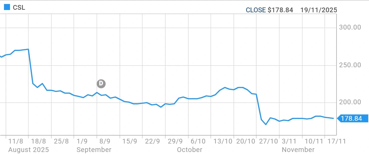 As of 19 November 2025, CSL shares were trading around A$178.84 on the ASX. The stock has experienced volatility recently, down approximately 12 per cent year-to-date.