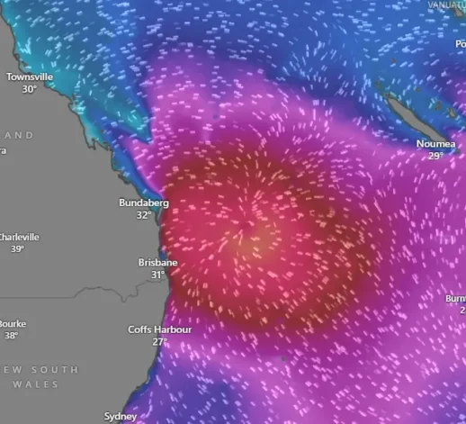 The Cyclone path indicates a high likelihood of direct landfall along Queensland’s southern coastline. The last cyclone to hit Brisbane with similar intensity was Cyclone Nancy in 1990.
