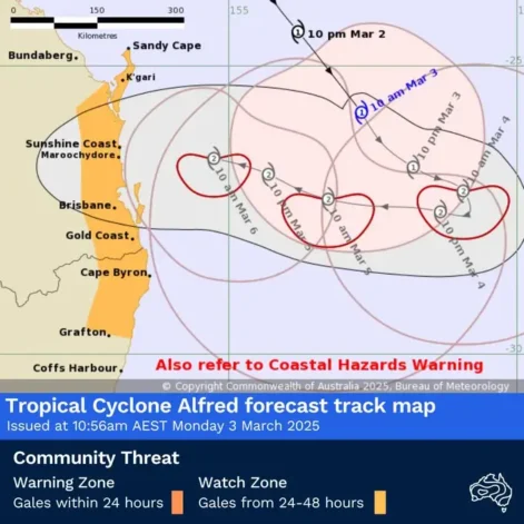 Tropical Cyclone Alfred is intensifying as it moves towards the Queensland coast, with warnings in place for Brisbane, the Sunshine Coast, and northern New South Wales. The Bureau of Meteorology (BOM) has confirmed that Cyclone Alfred has strengthened to a category 2 cyclone, bringing dangerous weather conditions.