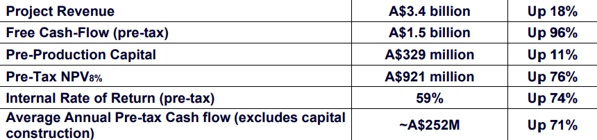The pre-production capital requirement stands at $329 million, an 11% increase from the previous study. This includes $289 million for a 1.5-million-tonne-per-annum processing plant and $40 million for pre-development activities.