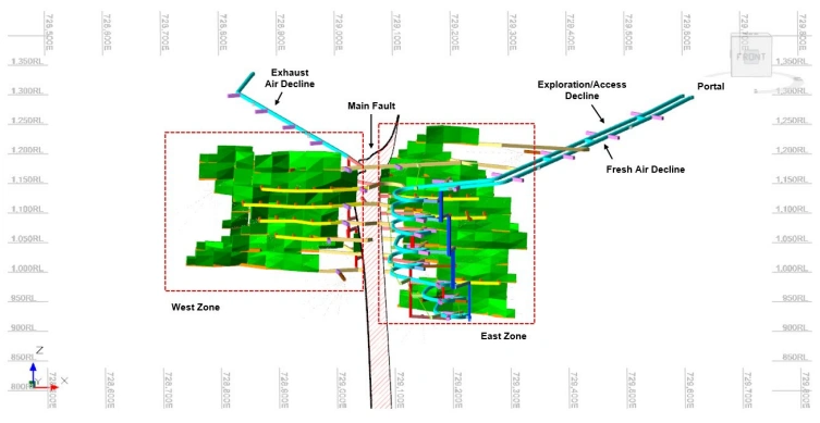 Twin declines are already underway to develop to the bottom of the known orebody at 350 metres below surface. This will enable exploration drilling from underground platforms to expand resources and reserves.