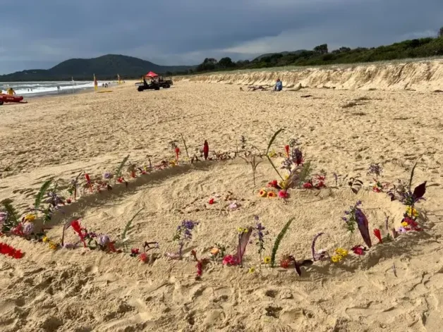 Locals Mourn With Floral Tribute on Beach