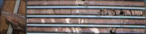 Core samples displaying visible gold from recent drilling. [Courtesy: Emerald Resources]