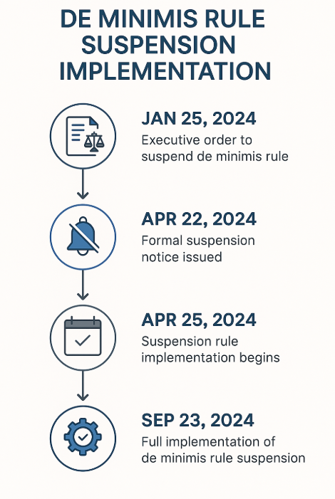 Figure 2: Timeline of de minimis rule changes and implementation