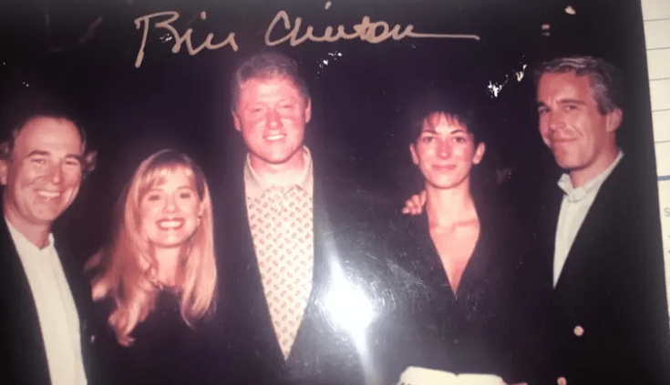 Former President Bill Clinton appears in a photo released by the committee. The image shows him with Epstein, Ghislaine Maxwell, and two unidentified individuals. Clinton’s signature is visible on the photograph. The context of the encounter is unknown, as the committee did not release any details linked to the image.