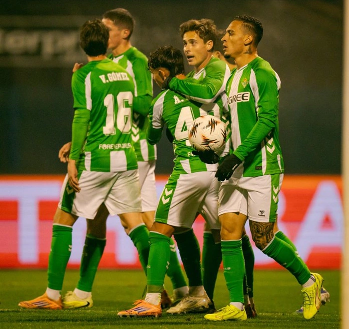 Figure 3: Real Betis squad rejoices following a first-half goal that set the tone for their dominant performance in Zagreb.