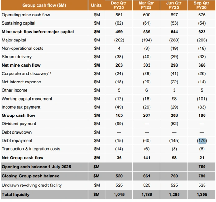 Evolution Mining reduced gearing to 11% by the end of September 2025. This compares to 15% gearing at 30 June 2025, demonstrating rapid deleveraging progress.